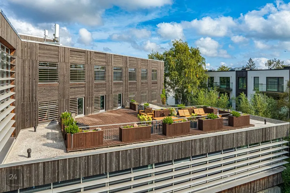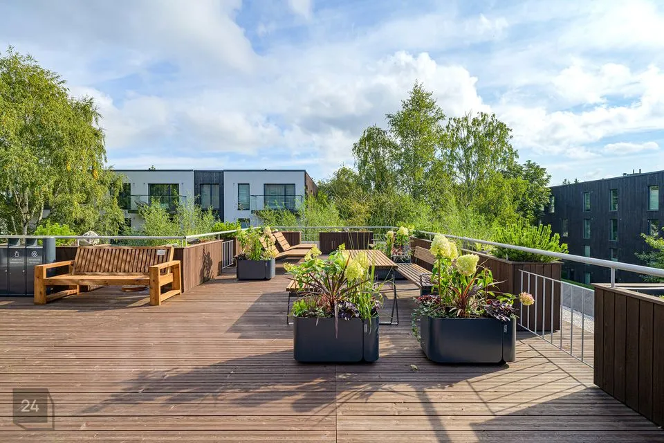 Kolmandal korrusel asub suur üldkasutatav, pärastlõunasele päikesele avatud katuseterrass.