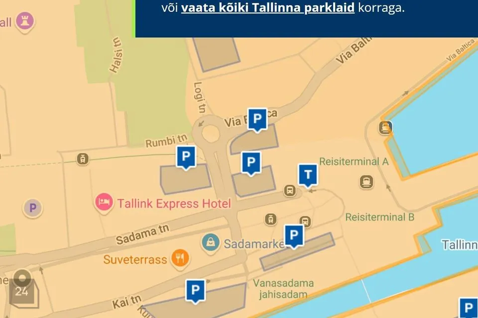 Porto Franco parkimismajas ja avalik parkimine linna parklates.