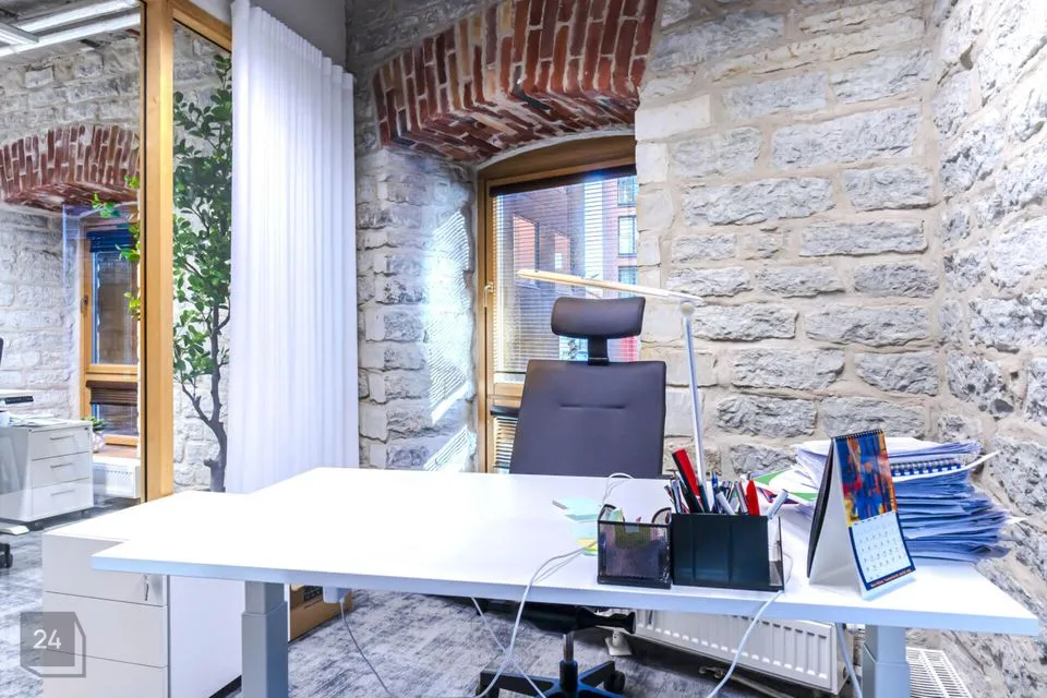 See on hubane, ent funktsionaalne tööruum, kus ajalooline arhitektuur ja kaasaegsed lahendused loovad inspireeriva keskkonna.