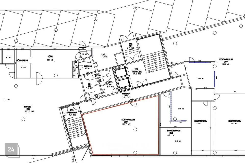 Pind koosneb ühest ruumist, mida vajadusel saab kergseintega liigendada. Tualettruumid on koridoris.