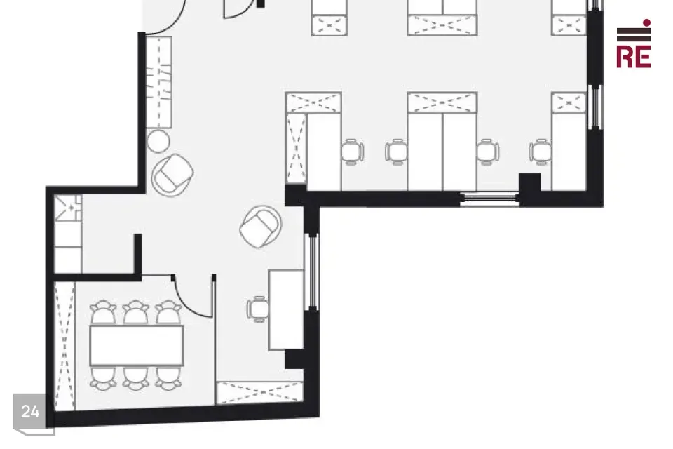 Standardlahendusena koosneb pind avatud tööalast ning koosolekuruumist. Pinnal on olemas uus kööginurk.