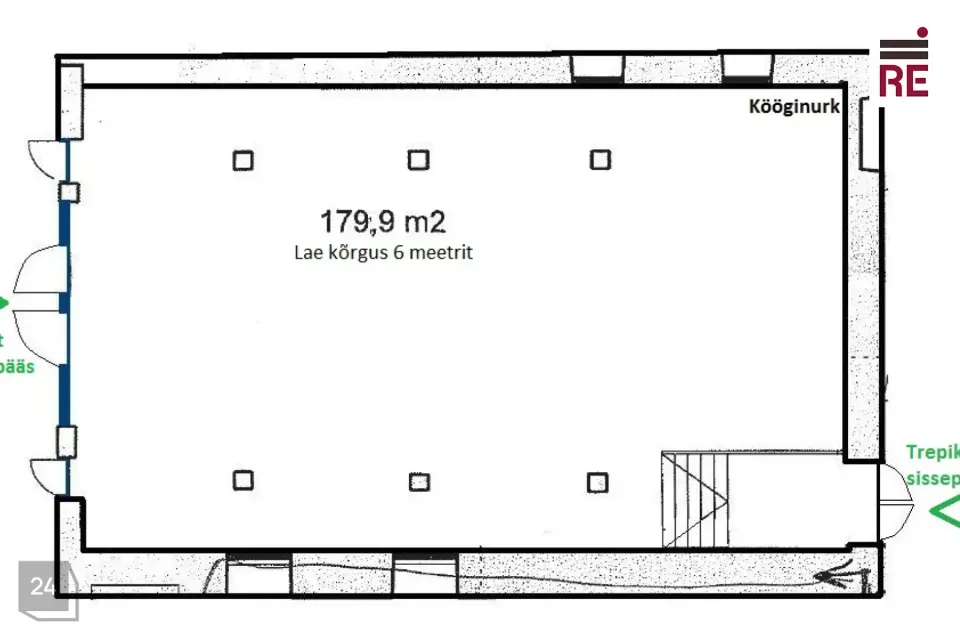 Üürile anda Põhja-Tallinnas Niine tänaval kõrge laega äripind suuruses 183,8 m²