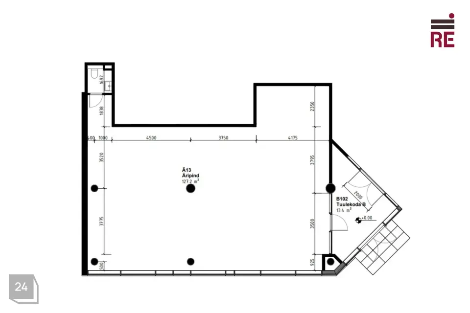 Hoone 1. korrusel on pakkuda 127,2 m² suurune äripind. Ruumil on suured vitriinaknad ja asub suure fuajee kõrval. Pakutava ruumi Ä13 plaan on leitav piltide galeriis.