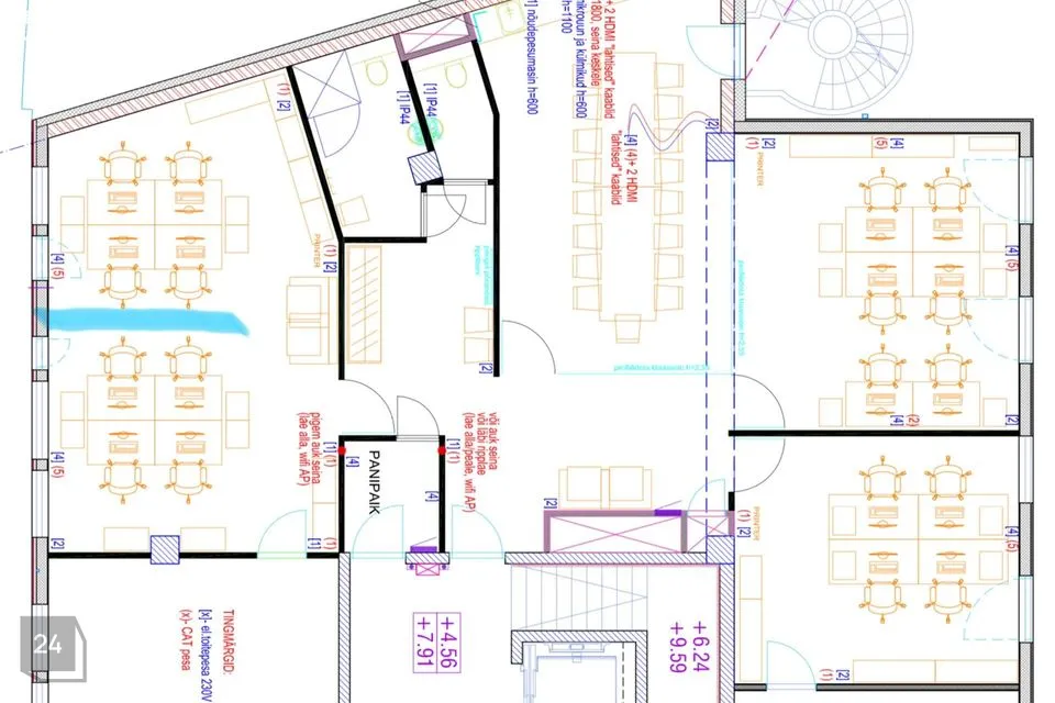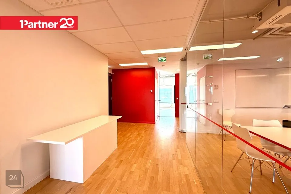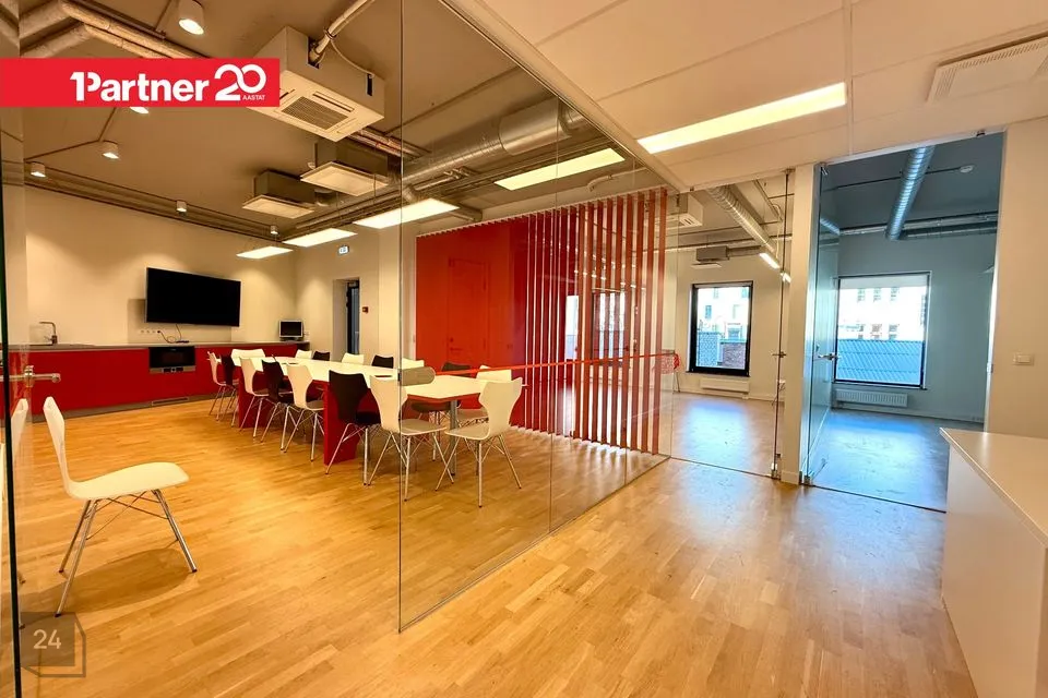Büroopind asub hoone teisel korrusel ja aknad avanevad mõlemale poole hoonet. Büroopinnale sisenedes on vastuvõtuala, erineva suurusega eraldatud ruumid ja nõupidamiste ruum. Olemas kaks wc-d ja köögiala