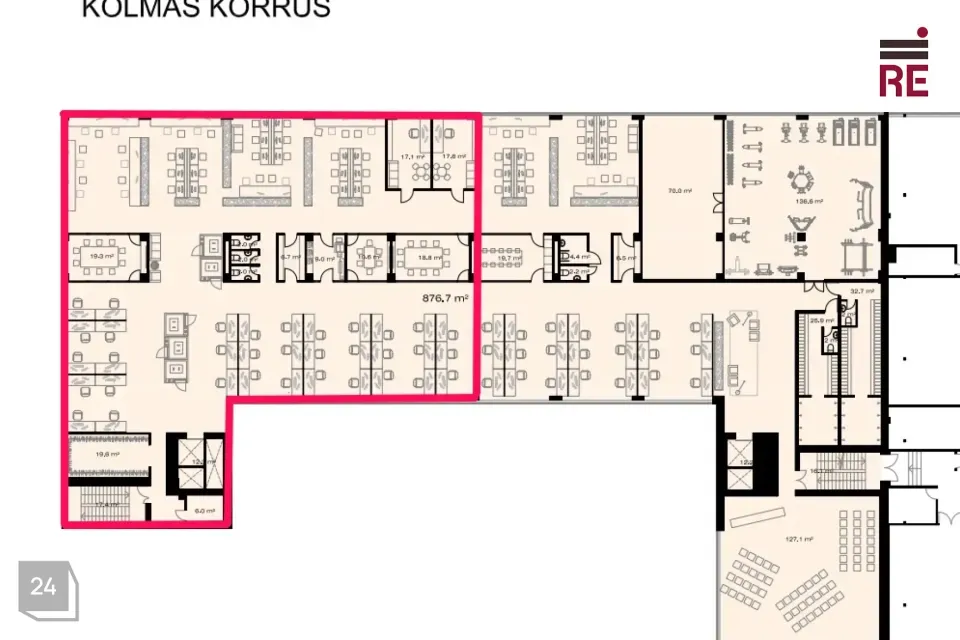 Saadaval on ka terve korrus, kokku pinda korrusel ca 1500m2. Samuti on võimalik üürida pinda hoone 1.korrusel kuni 400m2.