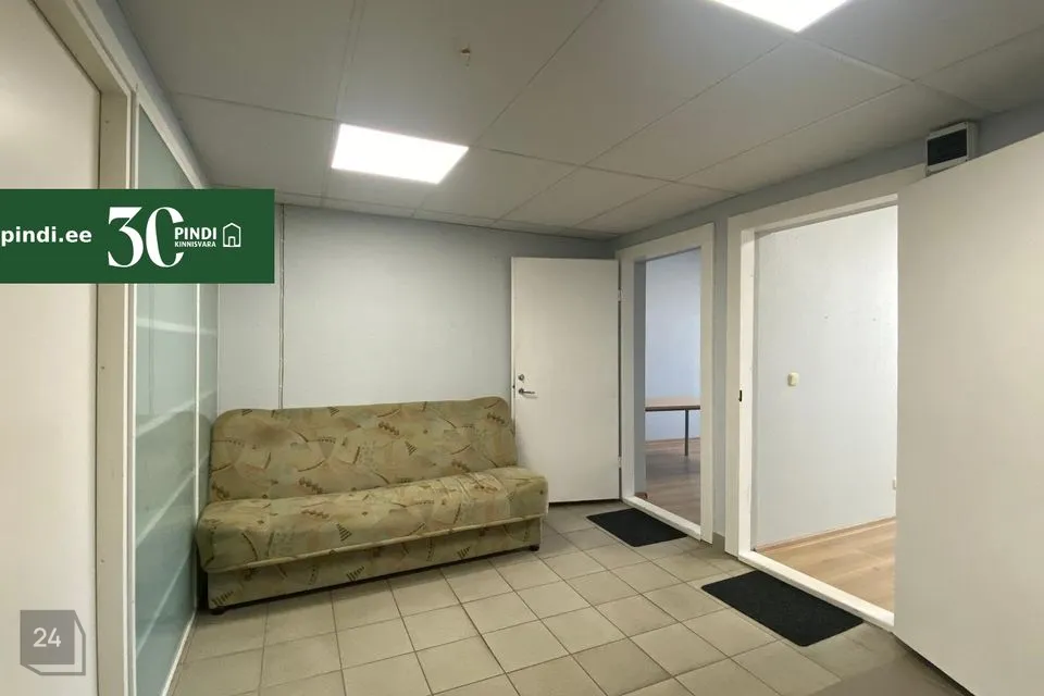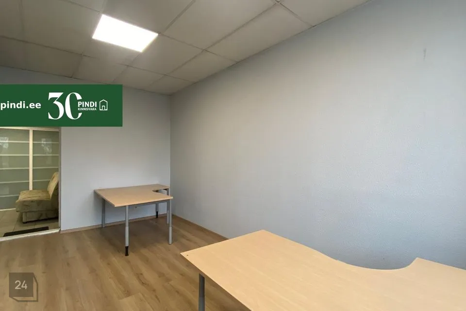 Büroo paikneb hoone esimesel korrusel ning on valmis koheseks sissekolimiseks. Ruumis on suured avatavad aknad, mis tagavad loomuliku valguse ja meeldiva töökeskkonna. Büroopind on planeeritud nii, et seal on eraldiseisev tualettruum, mis tagab kasutajale maksimaalse mugavuse. Tegu on avatud lahendusega ruumiga, mida saab sisustada vastavalt ettevõtte vajadustele – sobilik kontoritööks, teenusteks, nõupidamisteks, teeninduseks jmt.