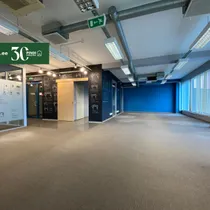 Sissepääsu juures asub suur garderoob, kuhu saab asetada nii töötajate kui ka klientide üleriided. Sissepääsust vasakul asub suurem avar kontoriruum, mille kõrval on kolmest küljest klaasist suletud eraldi uksega kontoriboks. Sissepääsust paremale asub kööginurk ning kaks ka eraldi suletud kontoripinda.