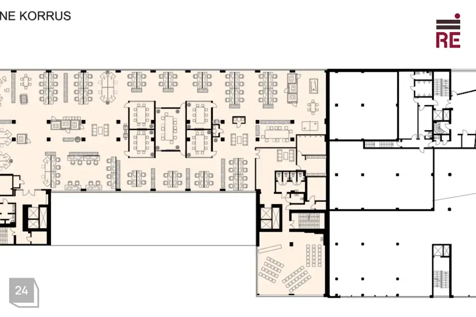 Üüritav pind paikneb kahel järjestikku korrusel (2. ja 3.korrus), kumbki korrus ca 1500m2. Kokku on hoones saadaval pinda ca 4900m2.