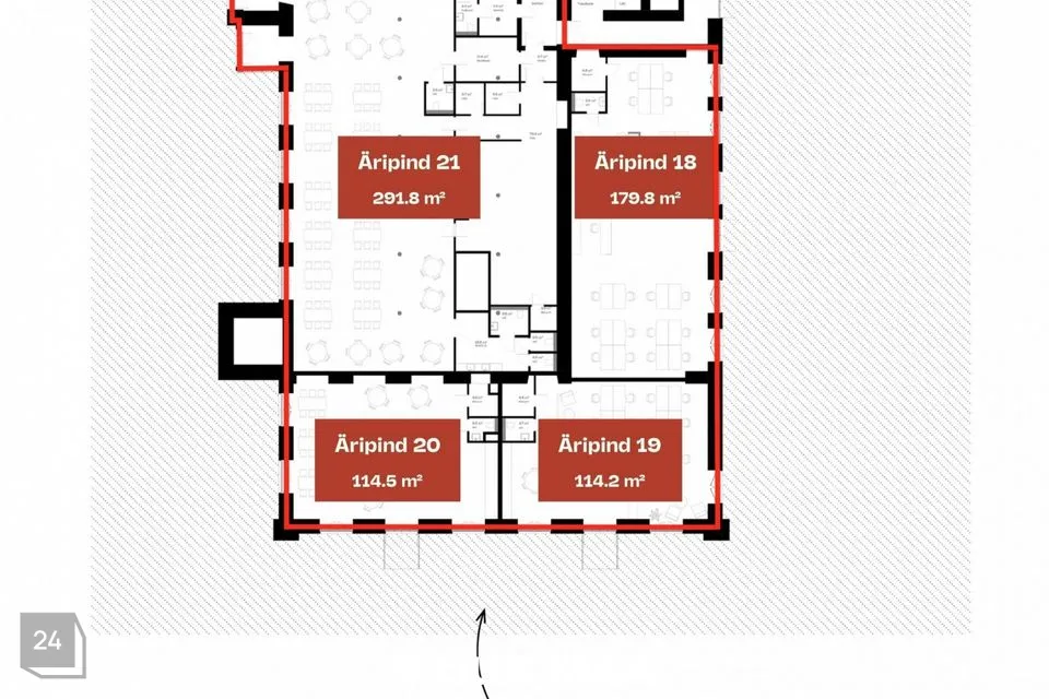 Üürile anda 700 m² äripind ajaloolise Manufaktuuri Vabriku maja esimesel korrusel. Pinda on võimalik nii ühendada kui ka väiksemateks osadeks jagada (vaata ka pildigaleriis olevat plaani):