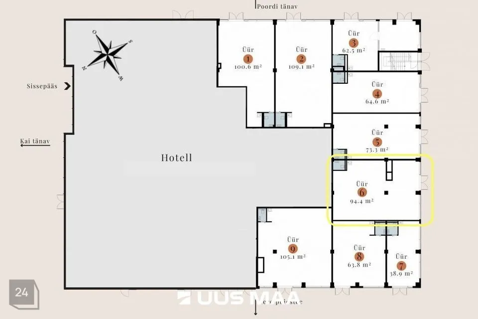 • Üldpindalaga 94,4 m², eraldi sissepääsuga tänavatasandilt.