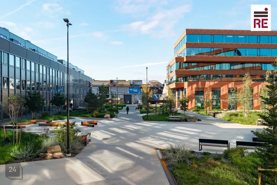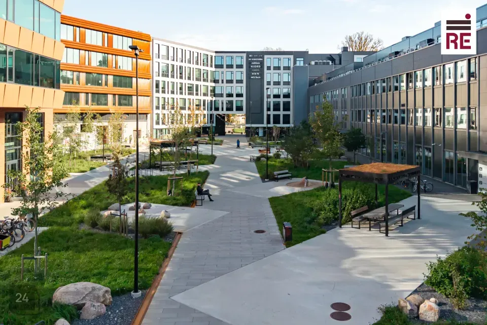 - Siia on loodud sisekvartali park koos haljastuse, laude, pinkide ja puhkealadega, kus teha kõnnikoosolekuid ja väljas töötada.
