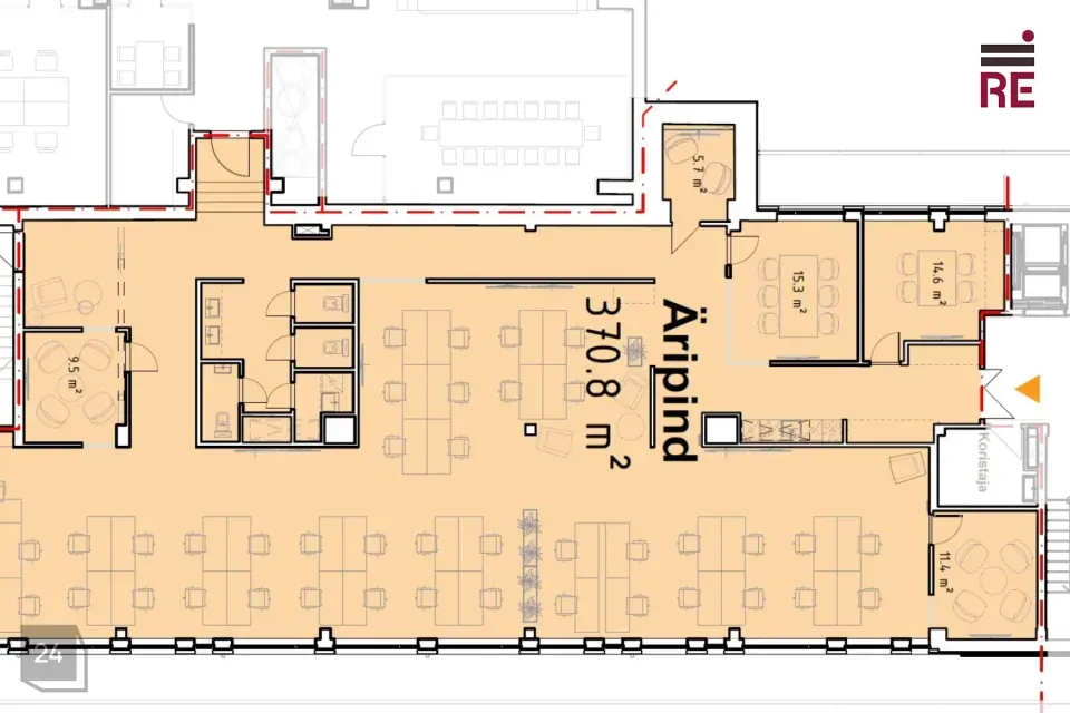 Üürile pakutakse teisel korrusel paiknev 370,8 m² suurune büroopind, kus üürniku kasutada on avatud tööala (võimalik paigutada kuni 44 töökohta), neli nõupidamisteruumi ja üks kõneruum.