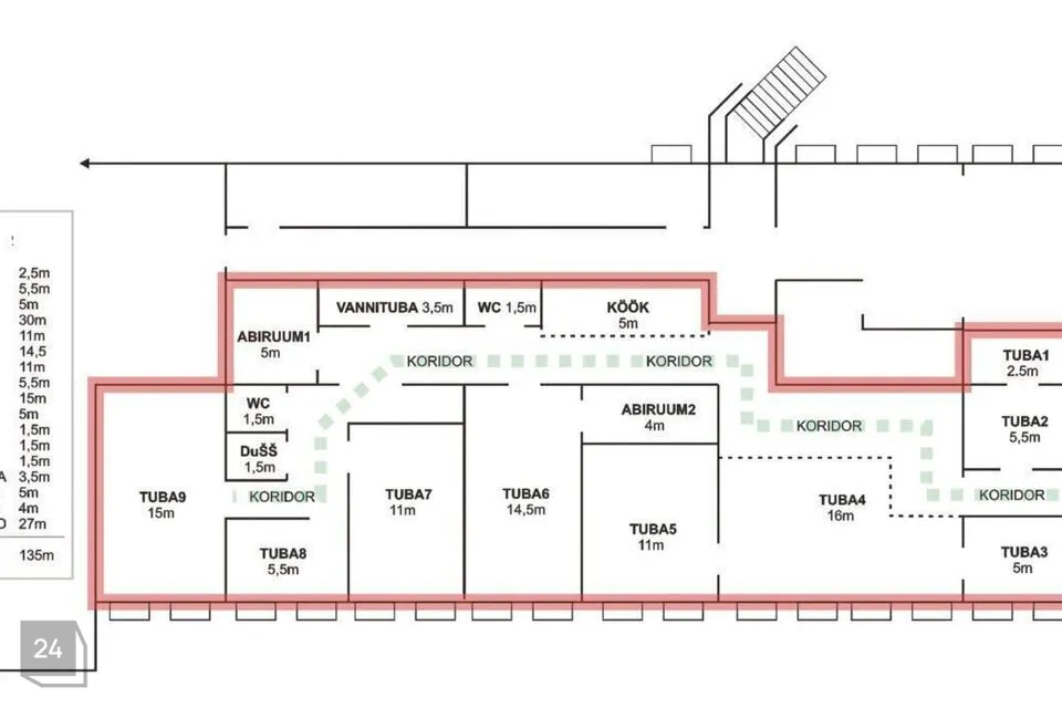 The commercial space consists of 7 rooms, a hall, shower rooms and several toilets.