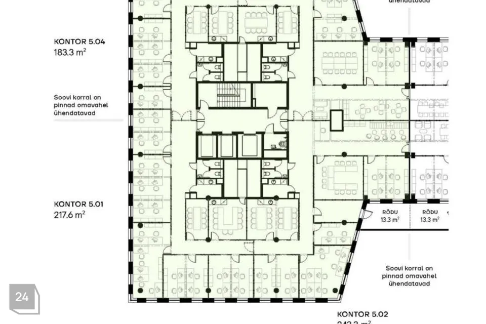 Võta meiega ühendust ning kombineeri korruseid ja kontoripindu vastavalt oma vajadustele. Hetkel on veel võimalik teha planeeringus muudatusi , et luua just sinu ettevõtte jaoks ideaalne töökeskkond.