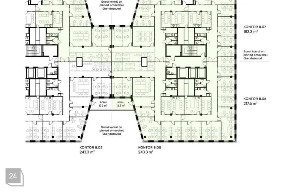 Võta meiega ühendust ning kombineeri korruseid ja kontoripindu vastavalt oma vajadustele. Hetkel on veel võimalik teha planeeringus muudatusi , et luua just sinu ettevõtte jaoks ideaalne töökeskkond.
