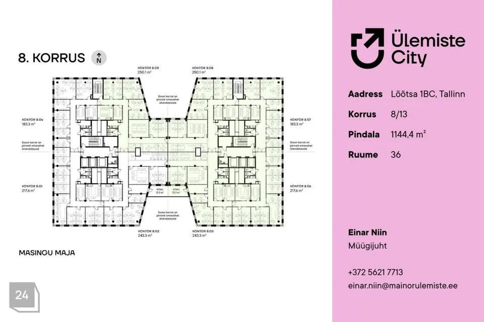 Üürile anda kõrgtasemel büroopind Ülemiste City südames, Masingu maja 8. korrusel. Pakutav büroopind on loodud modernset tööelu ja premium-klassi ootusi silmas pidades – kõrged laed, suured aknapinnad, erakordne loodusvalgus ja tipptasemel sisekliima- ning tehnosüsteemid tagavad maksimaalse mugavuse ja efektiivsuse. Iga ruum valmib individuaalse projektina koostöös üürnikuga, võimaldades kujundada eksklusiivne ja brändipõhine töökeskkond, mis peegeldab ettevõtte identiteeti ja väärtusi. Büroo pinna juurde kuuluv rõdu pakub mõnusat lõõgastust ja inspiratsiooni.