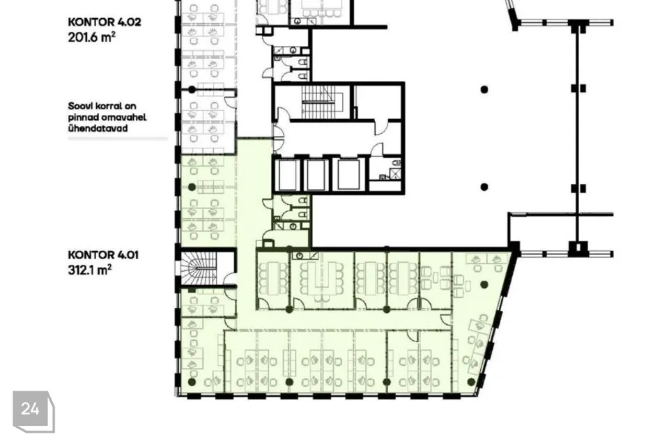 Võta meiega ühendust ning kombineeri korruseid ja kontoripindu vastavalt oma vajadustele. Hetkel on veel võimalik teha planeeringus muudatusi , et luua just sinu ettevõtte jaoks ideaalne töökeskkond.