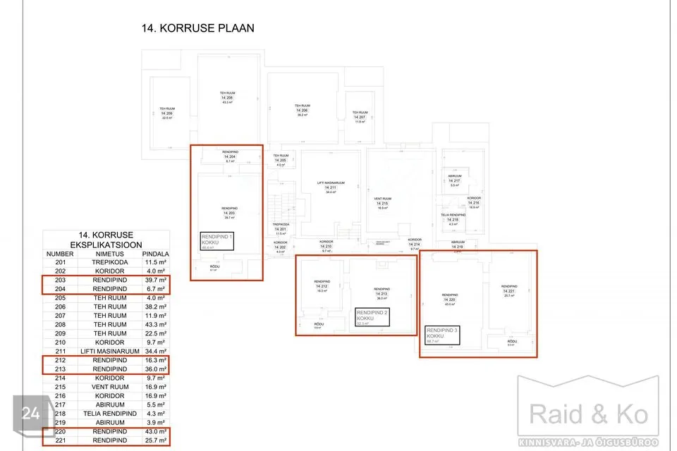 Üürile antakse kolm eraldi rõduga pinda, mis asuvad 14. korrusel: