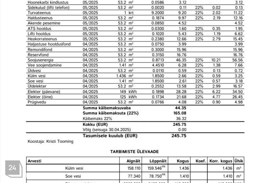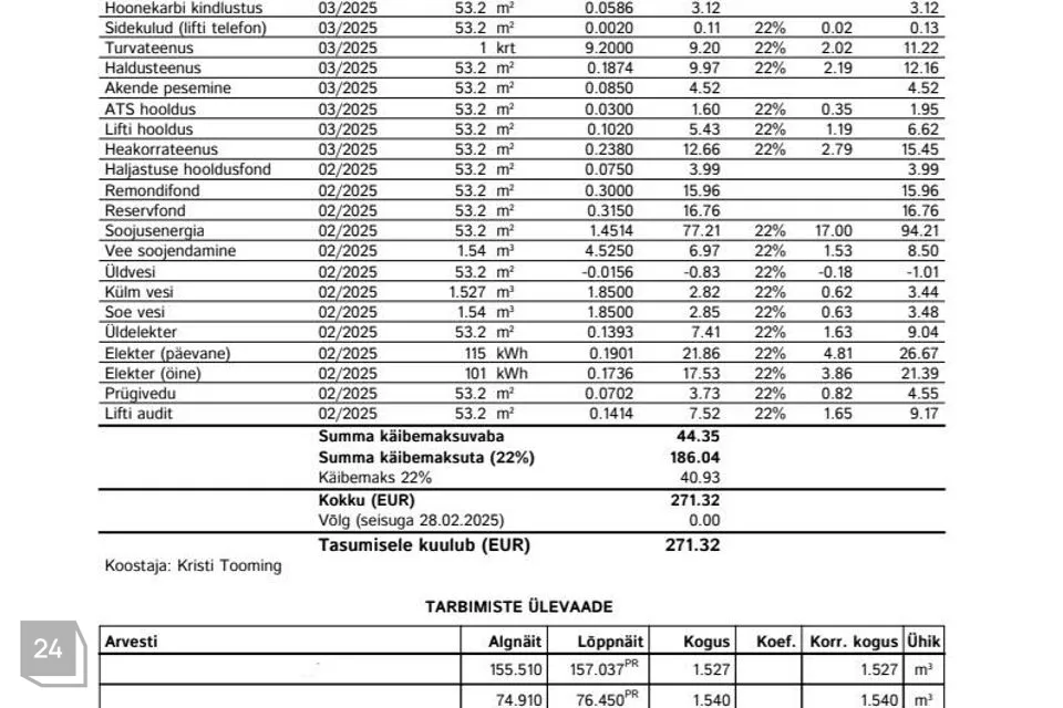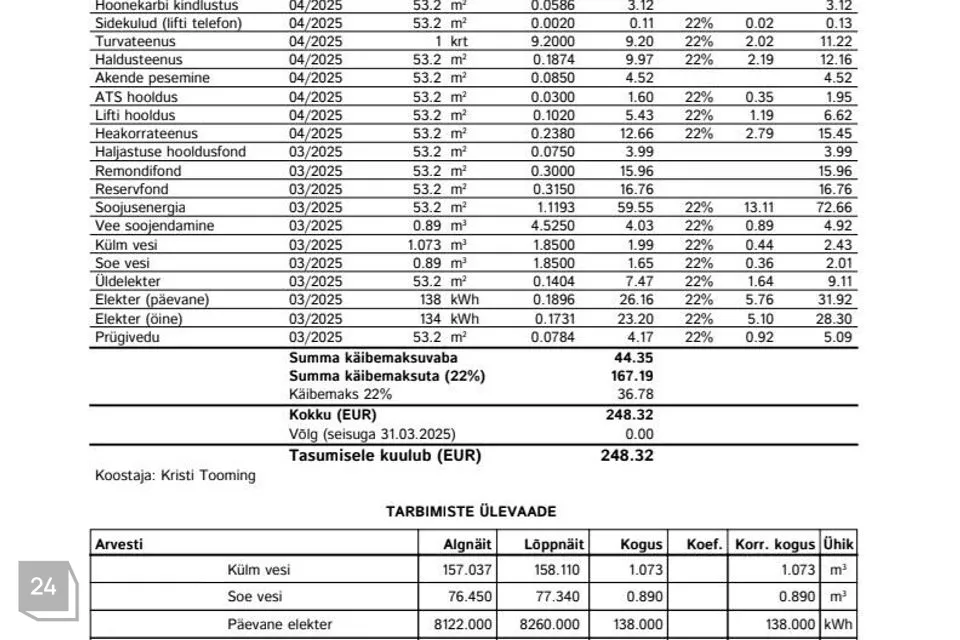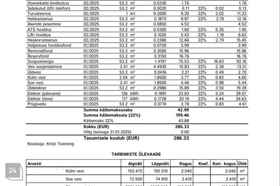 Kuu üürile lisandub kommunaal- ja mõõdetav kulu. Sideteenuse lepingu sõlmib üürnik ise. Esmane makse esimese kuu üür, tagatisraha ühe kuu üüri summas, ja vahendustasu ühe kuu üür.