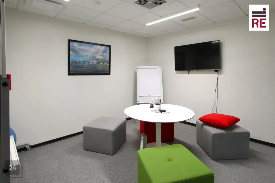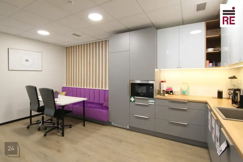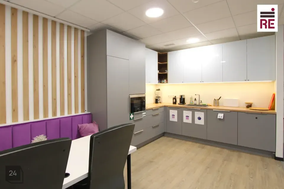 Pakutav büroo asub 3. korrusel ja selle plaan on leitav piltide galeriis. Ruumides on väike vastuvõtuala, nõupidamisruum (8-10in) sisseehitatud köögimööbliga puhkeruum, suurem kabinet/täiendav nõupidamisruum, avatud tööala, kaks tualetti. Hinnas sisaldub 5 parkimiskohta!