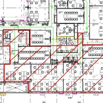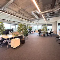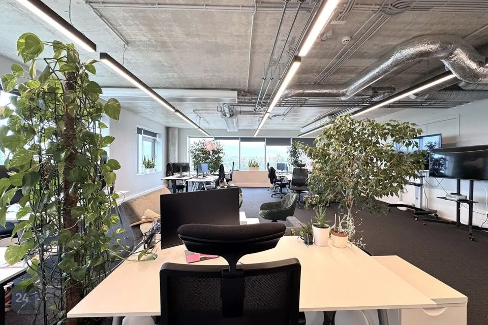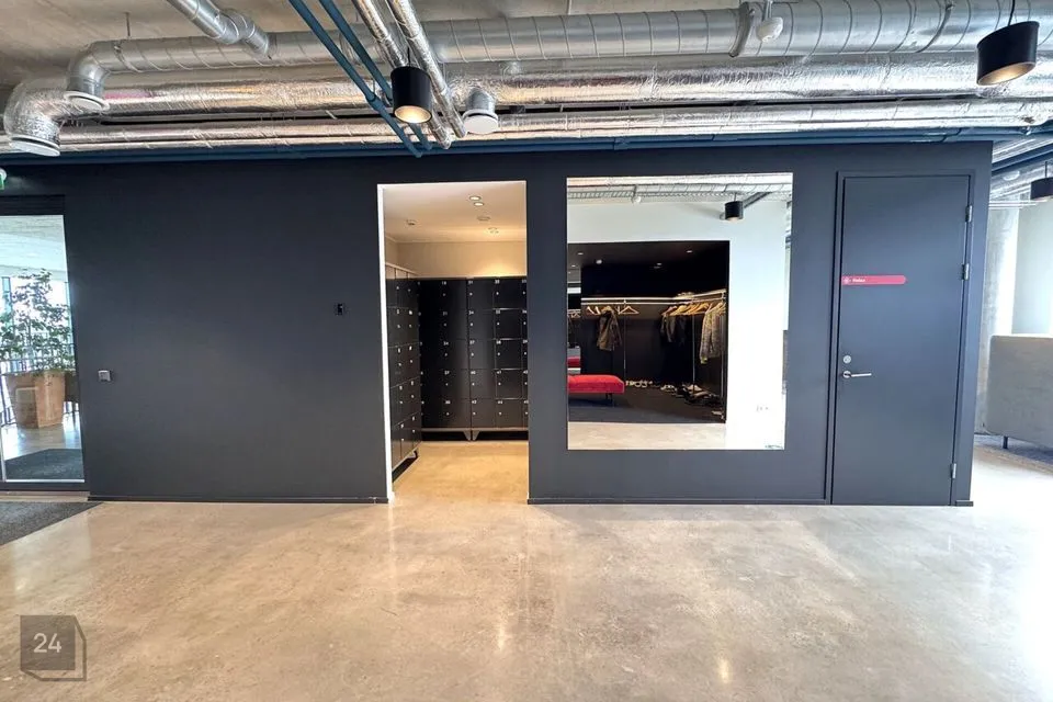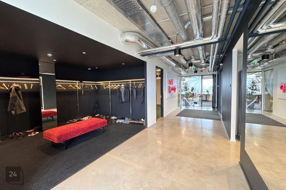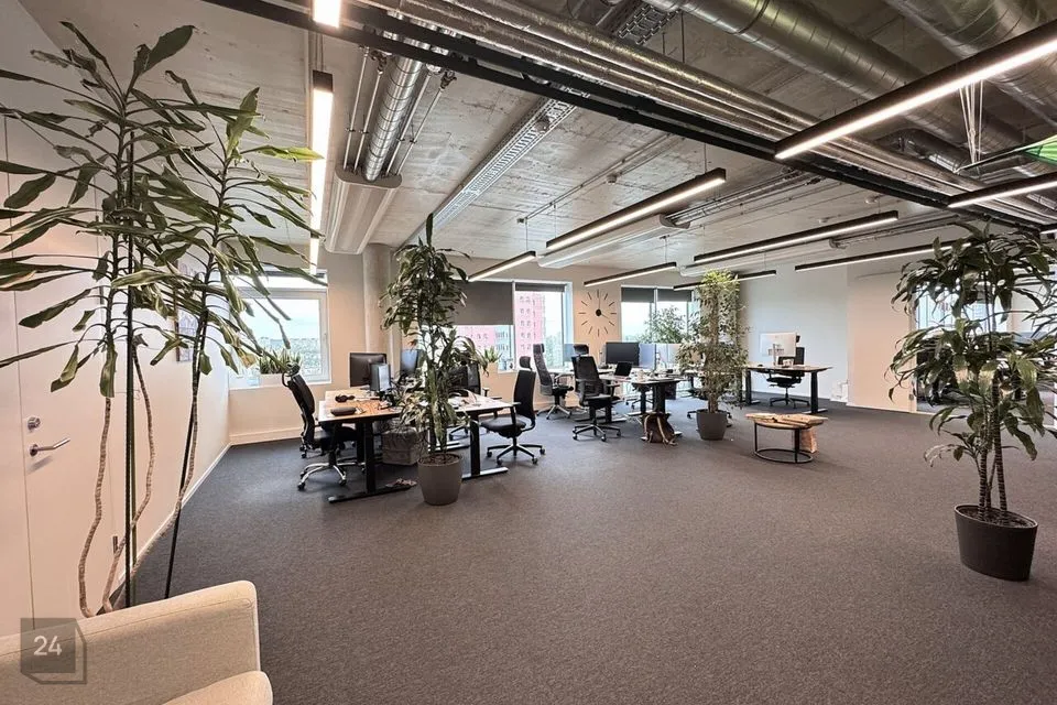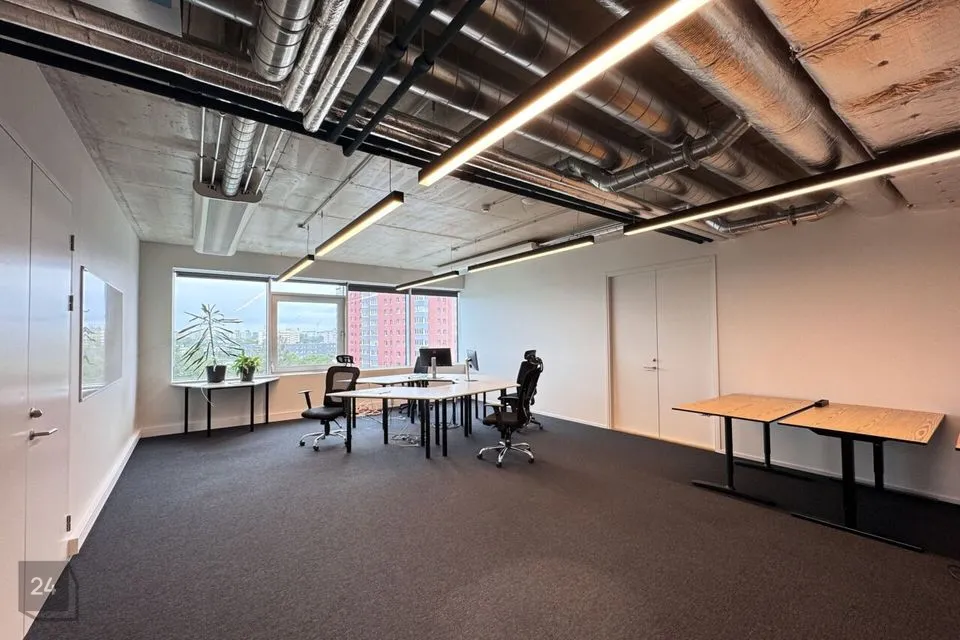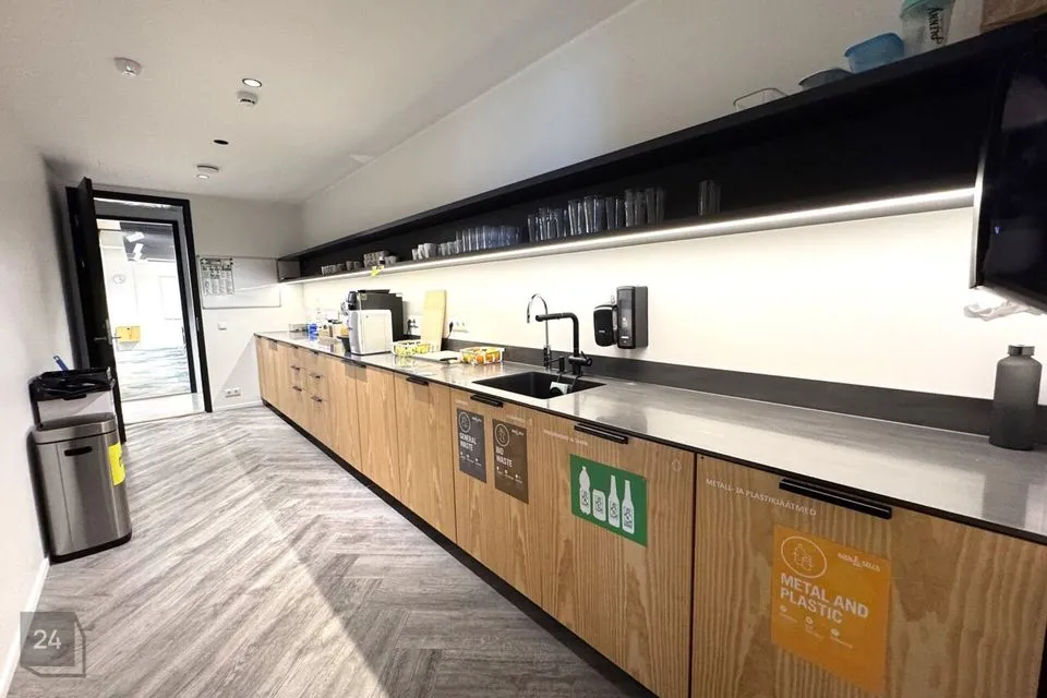 Antud büroopinna planeeringus sisalduvad neli eraldatud töötsooni, kaks eriti suurt koosolekuruumi, kolm eraldi tualetti, kööginurk mööbliga, suur garderoob lukkustatud kappide tsooniga, väike pannipaik, mis hetkel kasutusena massaaži ruumina.
