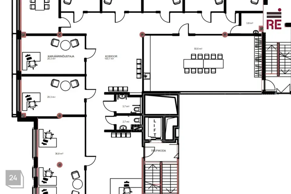 Planeeringut ja sisekujundust saab kohandada vastavalt üürniku soovidele.