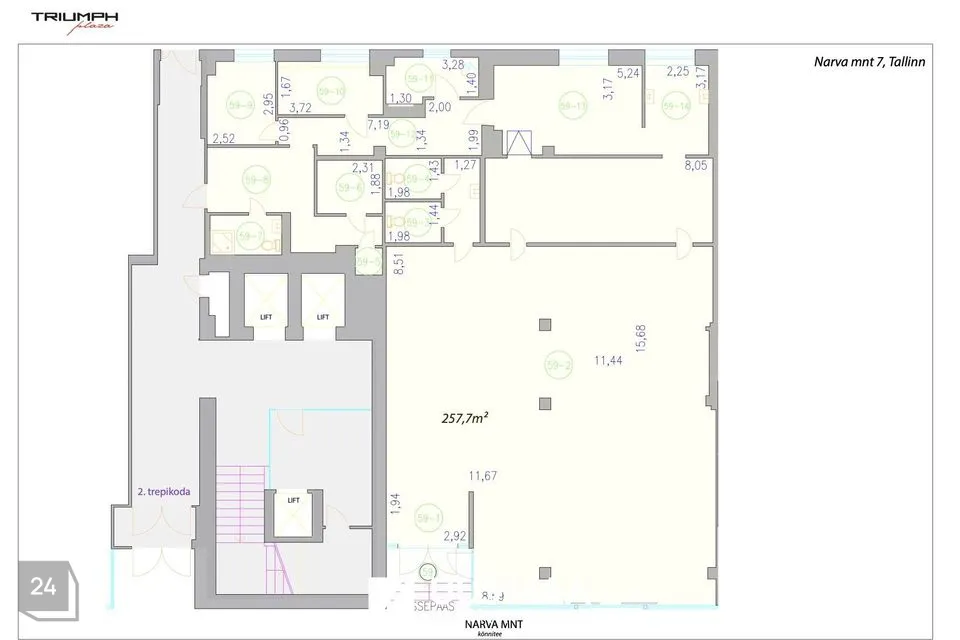 Üürile anda suurte vitriinakendega ja omaette sissepääsuga 1. korruse äripind Narva mnt alguses asuvas Triumph Plaza ärimajas.