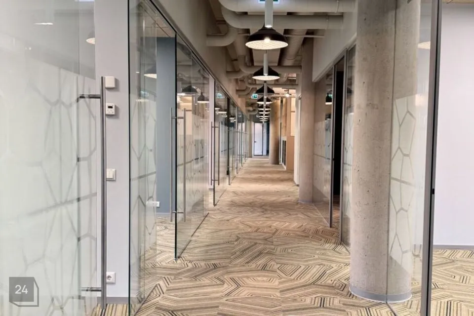 Büroopind on hästi läbimõeldud planeeringuga – on olemas erineva suurusega kabinetid, nõupidamisruumid ning üks suur aatrium-stiilis ruum, mis sobib nii koosolekute kui ka ühise aja veetmise kohaks.