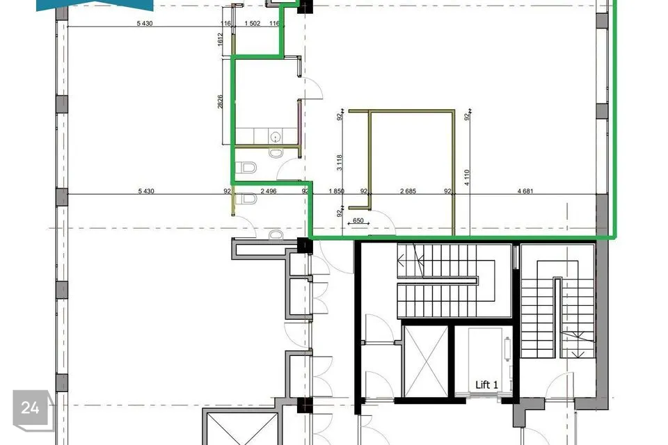 Hoone kaheksandal korrusel asuv büroopind koosneb järgmistest osadest: