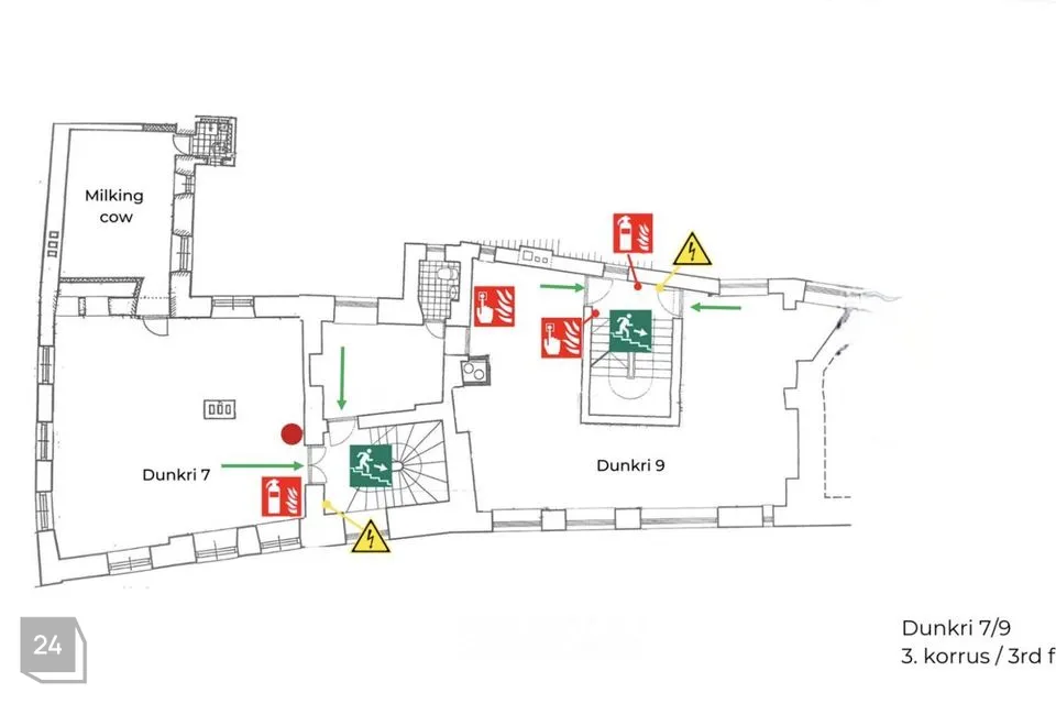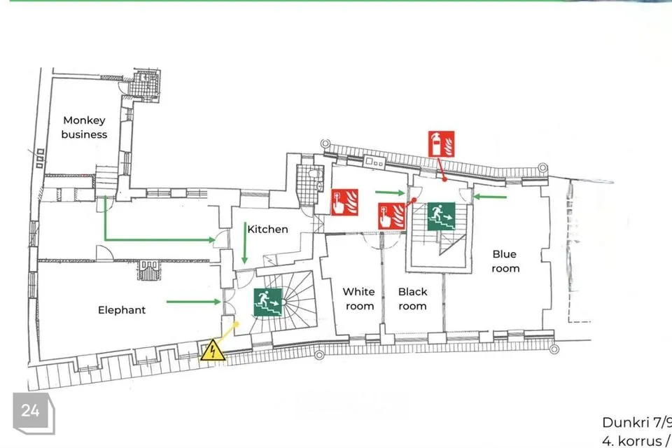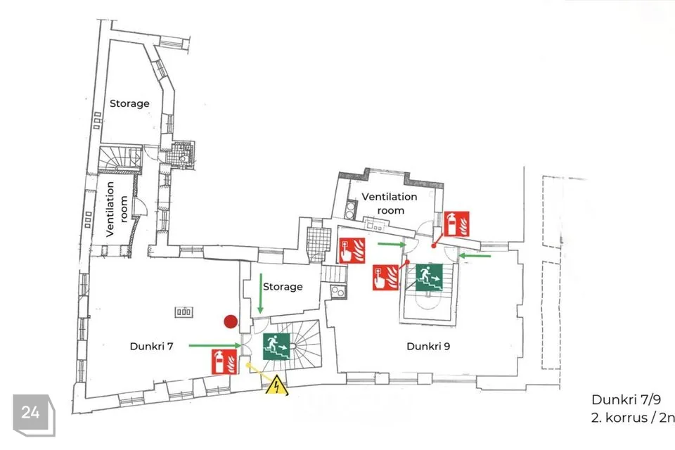 Hoone 2. ja 3. korrusel on mitud planeeringuga tööala, mida vajaduse korral saab klaasist vaheseintega liigendada (vaheseinad on üürileandjal olemas). Hoone 4. korrusel on üks tööruum, köök ja puhkeala ning nõupidamisruumid, lisaks on nõupidamisruum ja 2. ja 3. korrusel. Pinnale mahub vähemalt 65 töökohta. Kõigil korrustel on olemas tualettruumid ja puhkealad. Hoones on uus, modernseim gaasikatel. Vanalinna hoonele omaselt on sisekliima meeldiv - talvel soe, suvel mitte liiga palav.