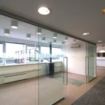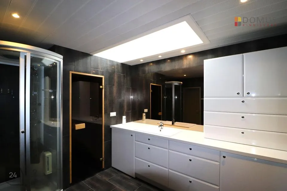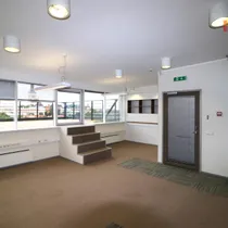 Pakutav pind on kergseintega jaotatud erineva suurusega kabinettideks. Olemas on eraldi nõupidamisteruum, olmeruumid ning saun koos pesuruumiga.