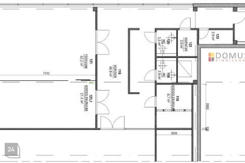 Pakutavad ruumid asuvad hoone 2. korrusel. Pinnal on neli eraldi tööruumi, lisaks kaks tualettruumi ning kööginurga paigaldamise valmidus. Ruumide plaan on leitav pakkumise piltide galeriist.