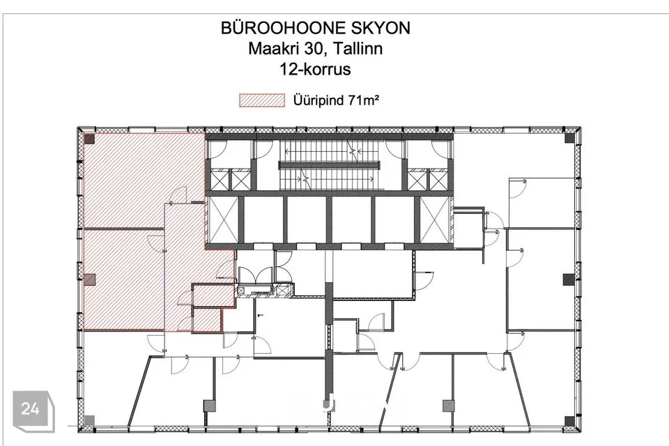 Üürile anda kaunite vaadete ja hubase atmosfääriga büroo silmapaistva Skyon büroohoone 12. korrusel.