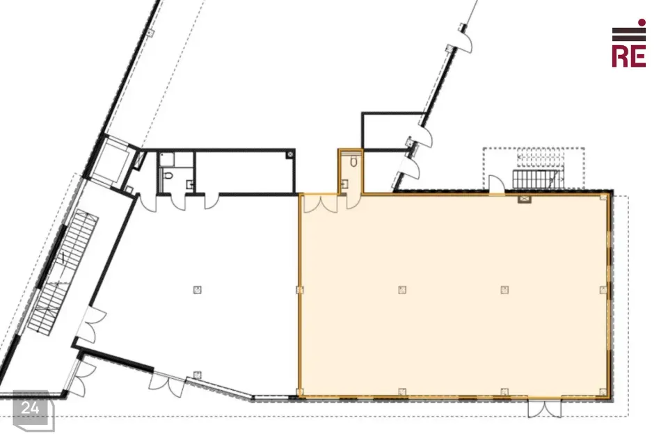 Pinnal on veeühendused köögi jaoks, abiruumid ning ligipääs suurde lattu, mida on võimalik lisaks üürida 10,5Eur/m2+km+kõrvalkulud (lao suurus 754m2). Laopinnal on laadimine maaga tasapinnas olevate tõstuste kaudu. Tootmis- või laoruumi kõrgus fermini on 6m. Põranda kandevõime on 5 t/m2.