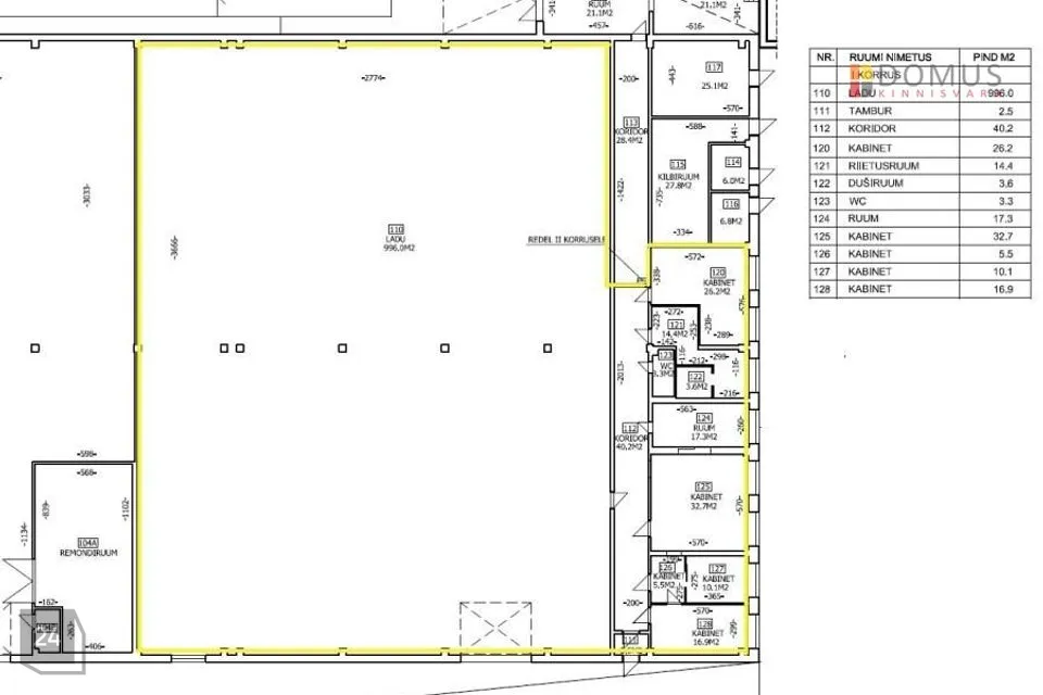 Anda üürile 1. korruse laopind koos bürooruumidega aadressil Laki 28, kogusuurusega 1162,5 m². Üüripind koosneb 996 m² suurusest laoruumist (laekõrgus tala alla 4,7 m, ülejäänud lae kõrgus 5,5m - 6,2m), mille juurde kuuluvad kontoriruumid (5 kabinetti, abiruum, pesuruum ja tualett). Ruumide plaan on leitav piltide galeriis.