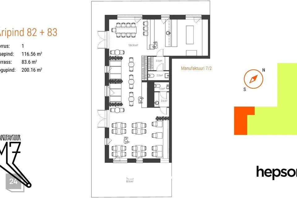 • Esimene korrus + 83,6 m² privaatne terrass (sobib suveterrassiks)