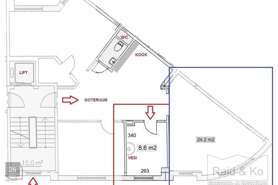 Lisaks on kasutada (25.5 m2) eesruumist, köögist ja wc st 1/3 (kokku 3 kasutajat) ehk 8,5 m2