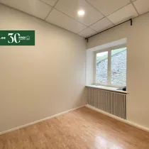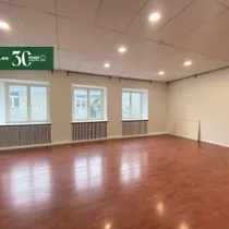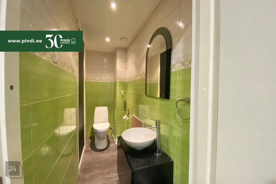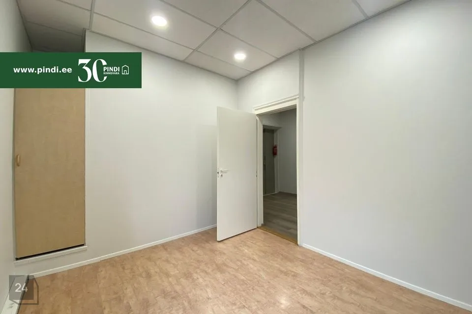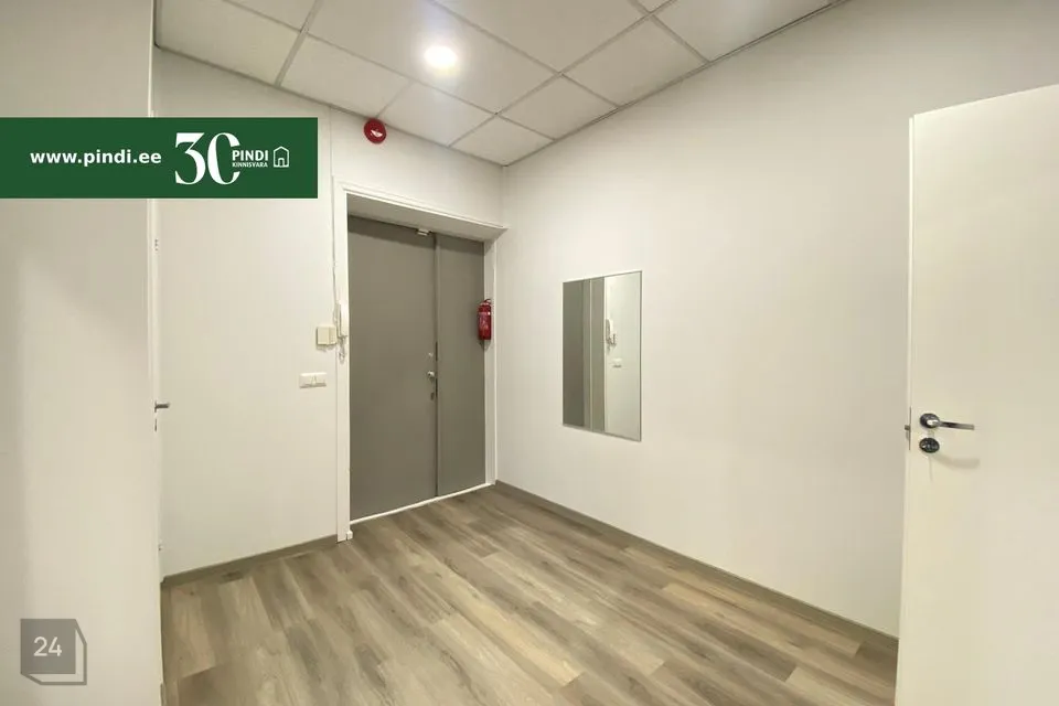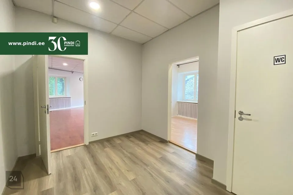 Sisenedes jääb otse avar põhiruum, millel on aknad kahele küljele – see loob ruumile loomuliku valguse ja avatud tunde. Paremale poole jääb eraldi väiksem bürooruum ning tualett, mis lisavad mugavust igapäevaseks kasutamiseks. Ruumid on hiljuti renoveeritud, heas seisukorras, varustatud LED-valgustuse ja loomuliku ventilatsiooniga.