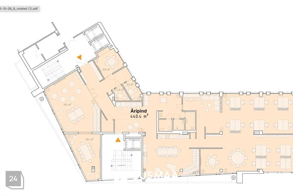 Pinna koosseisus on pisut liigendatud avatud planeeringuga tööala, nõupidamisruumid, kõneboksid, avar kööginurk-puhkeala ja tualettruumid.