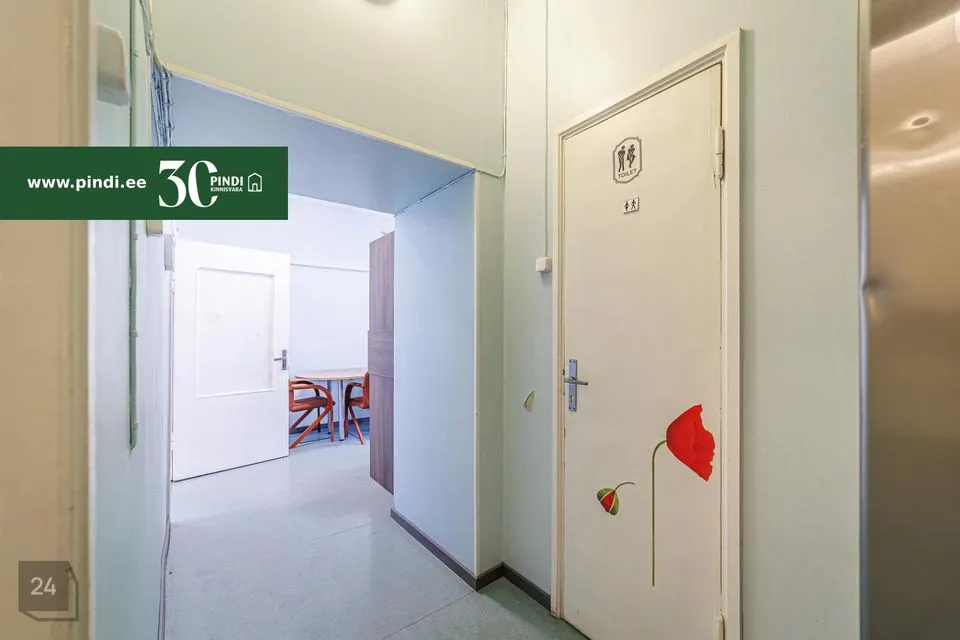 Büroopind koosneb neljast eraldi ruumist, mis võimaldavad ruumide kasutamist nii avatud kontorina kui ka kabinetipõhise töökorraldusena. Lisaks kuuluvad büroosse köögiala, duširuum ning eraldi tualettruumid, mis muudavad pinna igapäevaseks tööks täielikult iseseisvaks ja mugavaks. Tänu eraldi sissepääsule otse väljast saavad töötajad ja kliendid siseneda kontorisse sõltumatult ülejäänud hoonest – praktiline lahendus ettevõtetele, kes vajavad privaatsust ja sujuvat külastajate liikumist.