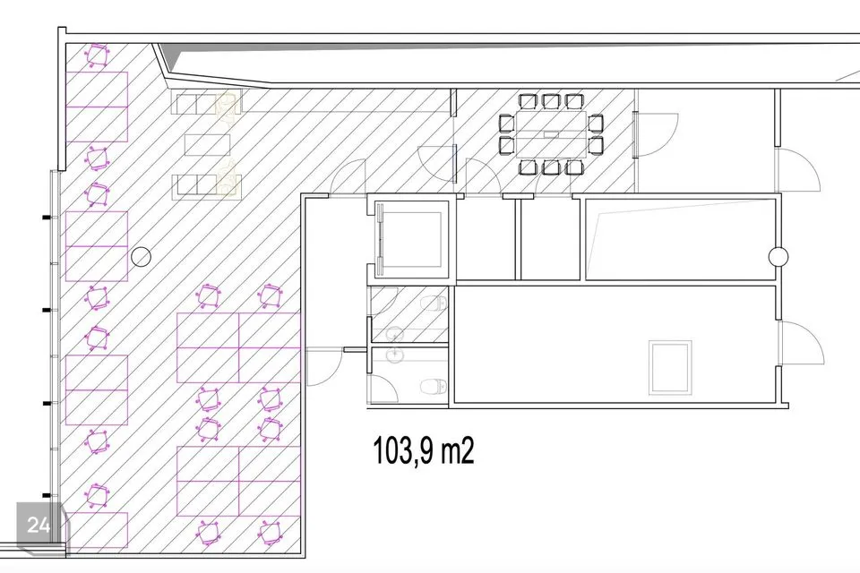 Pinna koosseisus on avatud tööala, nõupidamisruum, kööginurk ja tualett. Ruum on mõnusalt avar ja suurtest akendest avaneb kena vaade.