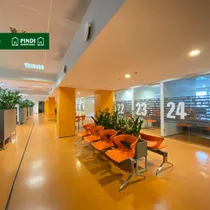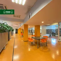 Pind paikneb hoone vasakus osas ning sellel on oma peauks otse tänavalt. Ruumides on suur klienditeenindussaal, mitmed väiksemad töö- ja kohtumisruumid ning tagumises osas paiknev koolitus- või koosolekusaal, mida saab vajadusel lükandseinaga kaheks jagada. Planeering on hästi läbimõeldud ja sobib nii klientide teenindamiseks kui ka meeskonnatööks.
