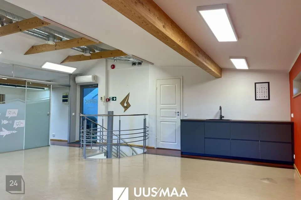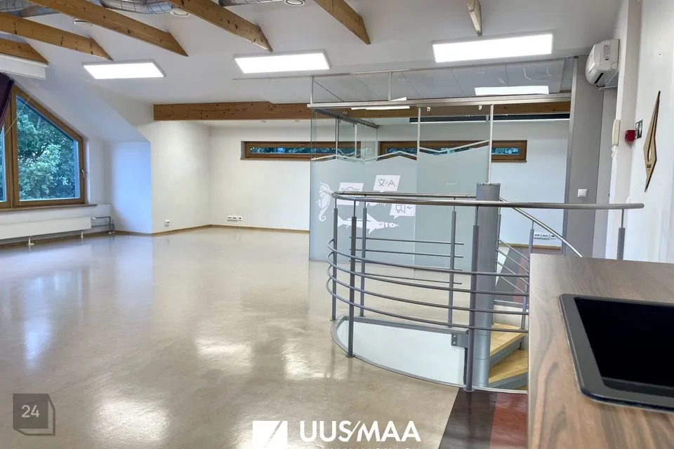See büroo on valgusküllane ja avar, loomuliku valgusega suurepärane töökeskkond. Otsaaknast paistab päevane päike ning tuba jahutab konditsioneer. Ruumi suurus ja paigutus võimaldavad sul kujundada selle vastavalt oma vajadustele ja soovidele. Eraldi tehtud nõupidamisteruum. Lisaks on olemas avatud kööginurk ja tualettruum.