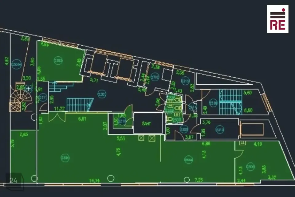 Pind sisaldab avarat põhitsooni, mis sobib suurepäraselt avatud kontori lahenduseks või keskseks tööalaks. Avatud ala ääres asub mitu väiksemat privaatruumi ja suurem ruum, mis sobib nõupidamisruumiks või juhikabinetiks. Pinnal on olemas kööginurga valmidus (tähistatud), sanitaarsõlmed (tualett) ja tehnilised abiruumid.
