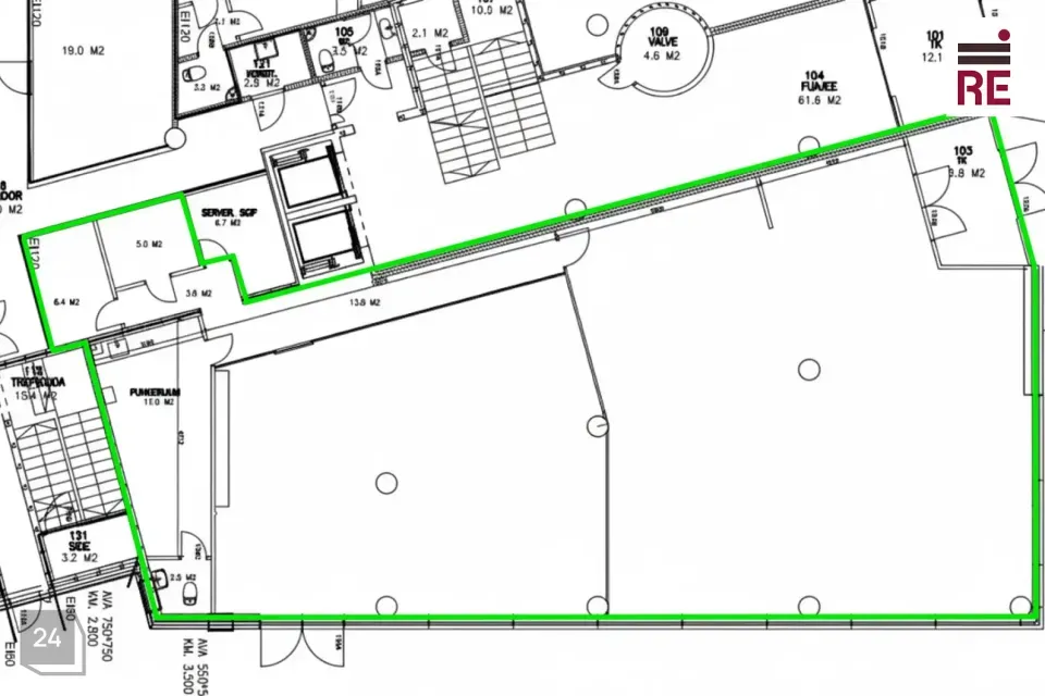 Tegemist on hoone nurgal asetseva suurte akendega avara ja mugavalt ligipääsetava müügiesinduseks sobiva pinnaga. Ruumidesse on kaks sissepääsu otse tänavalt. Hetkel on ruumi põhiosa jagatud kaheks (ca 145m2 ja 92m2), kuid neid saab vaheseina eemaldamisel ühendada. Lisaks on ruumides privaatne puhkeruum köögiga ja tualett.
