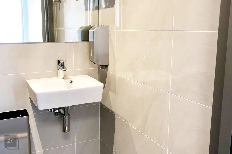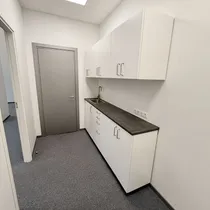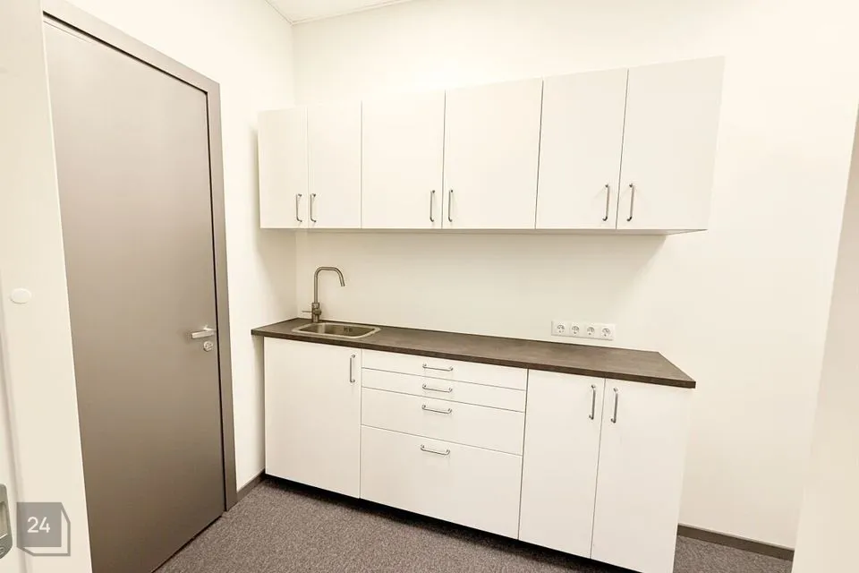 Kvaliteetne vaipkate, modernne LED-valgustus ja neutraalne toon annavad ruumile värske ja professionaalse ilme.