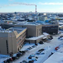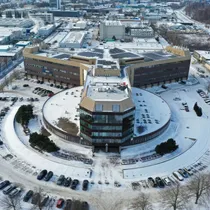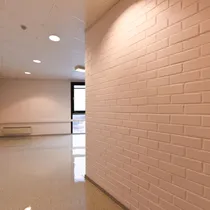 A-korpuses asub peamine sissepääs koos avara fuajee ja bürooruumidega.