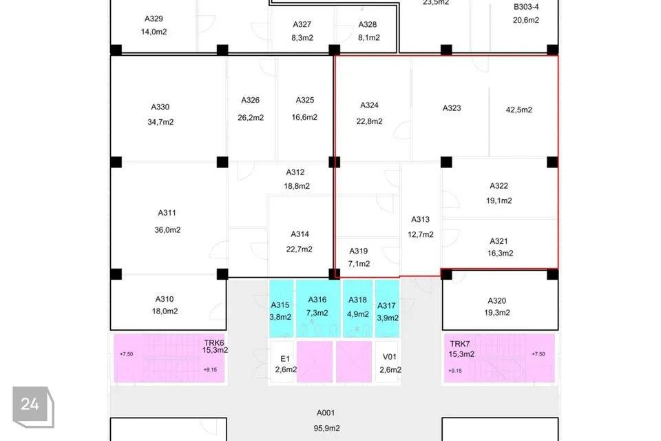 Tegemist on sisutatud bürooga, mis koosneb viiest kabinetist, nõupidamisruumist ja avatud kontoriruumist. Pind asub A-korpuse 3. korrusel, otse lifti kõrval. Põrand on kaetud laminaatparketiga, seinad on värvitud ning uued aknad ka paigaldatud. Samuti on olemas ka oma köögiruum.