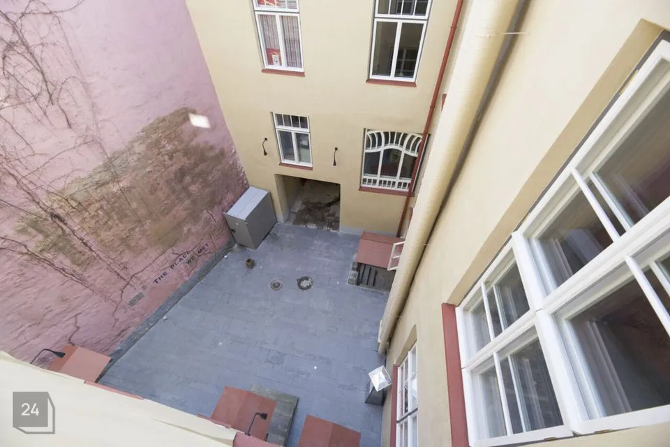 Kõrged laed ja valgusküllased aknad hoovialale.