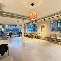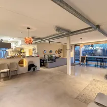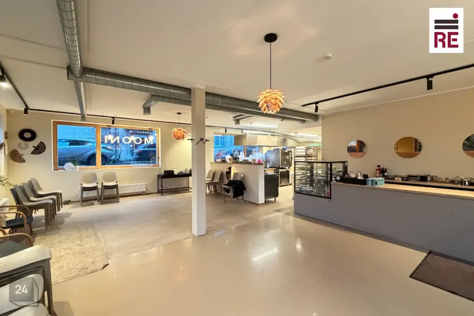 Ruum koosneb avatud saalist ja kahest tualettruumist. Kolmes seinas paiknevad aknad annavad pinnale rohkelt loomulikku valgust, avarust ja atraktiivsust toodete ja teenuste presenteerimisel. Aknad on avatavad.